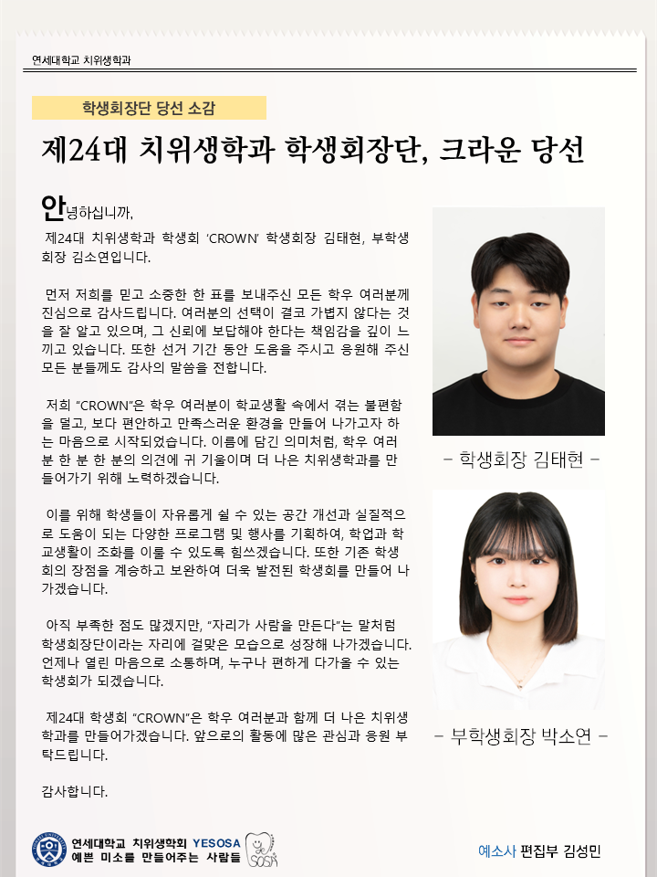 [2026-1] 제24대 치위생학과 학생회장단 크라운 당선