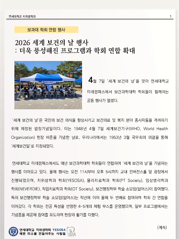 [2026-3] 2026 세계 보건의 날 행사: 더욱 풍성해진 프로그램과 학회 연합 확대
